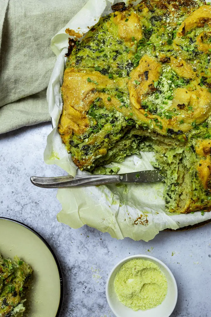 - Bestreue die Spinat-Artischocken-Schnecken mit etwas veganem Parmesan und frisch gehackter Petersilie.