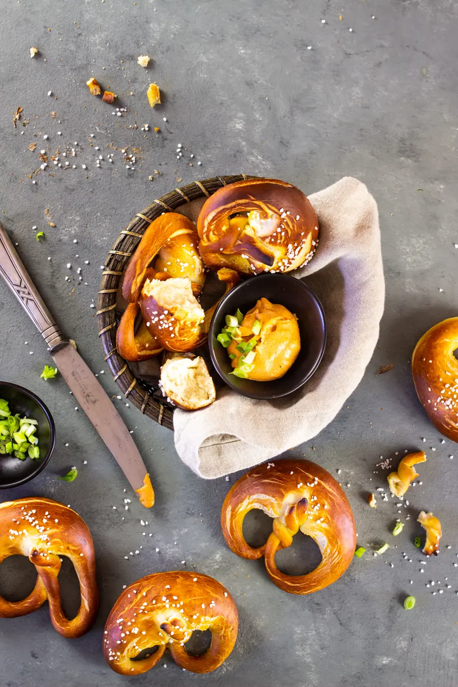 To get the authentic crust, I recommend using a baking stone. Cut the baking paper to match the stone so that you know how many pretzels fit on the stone. And how many you can back at a time.